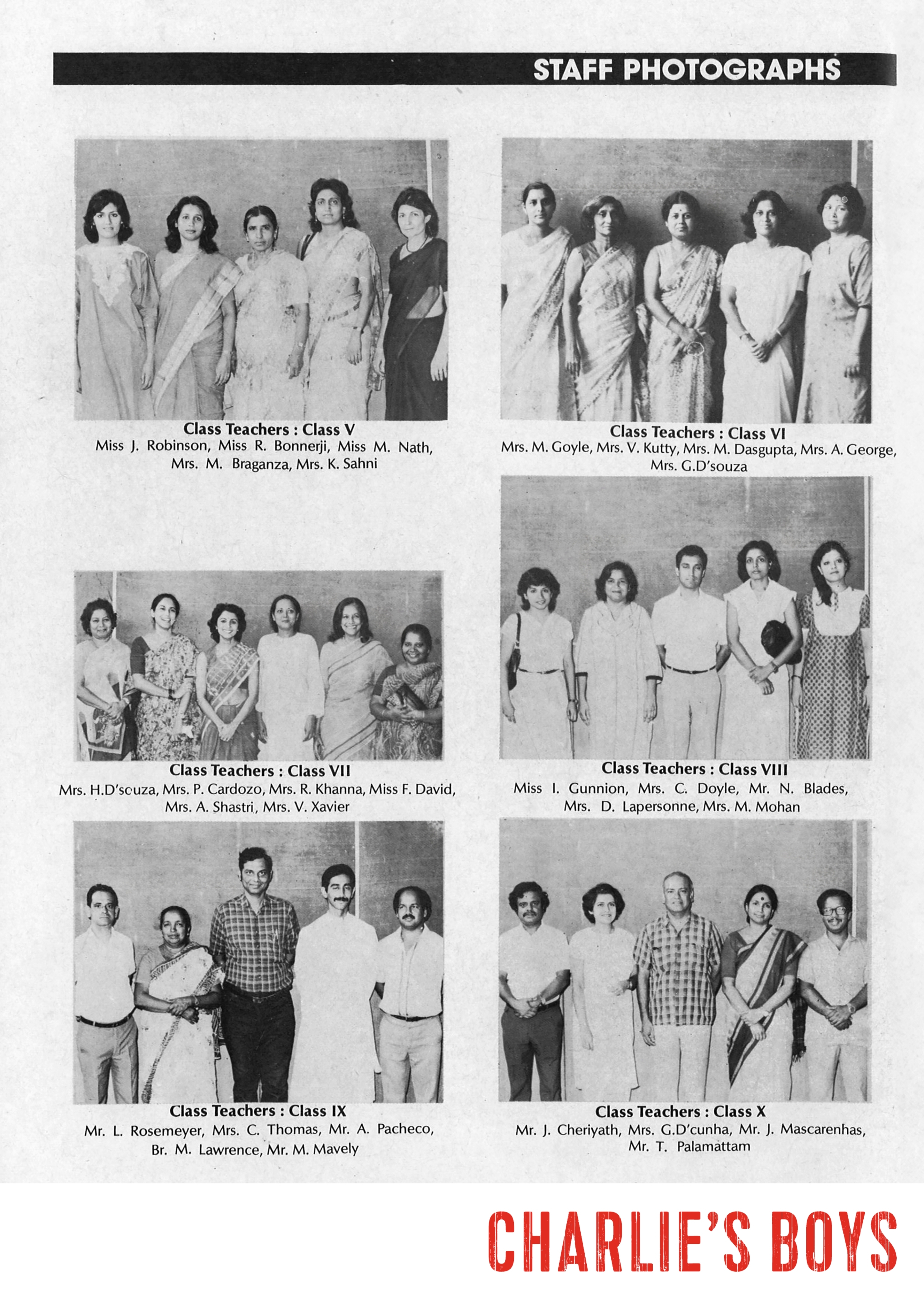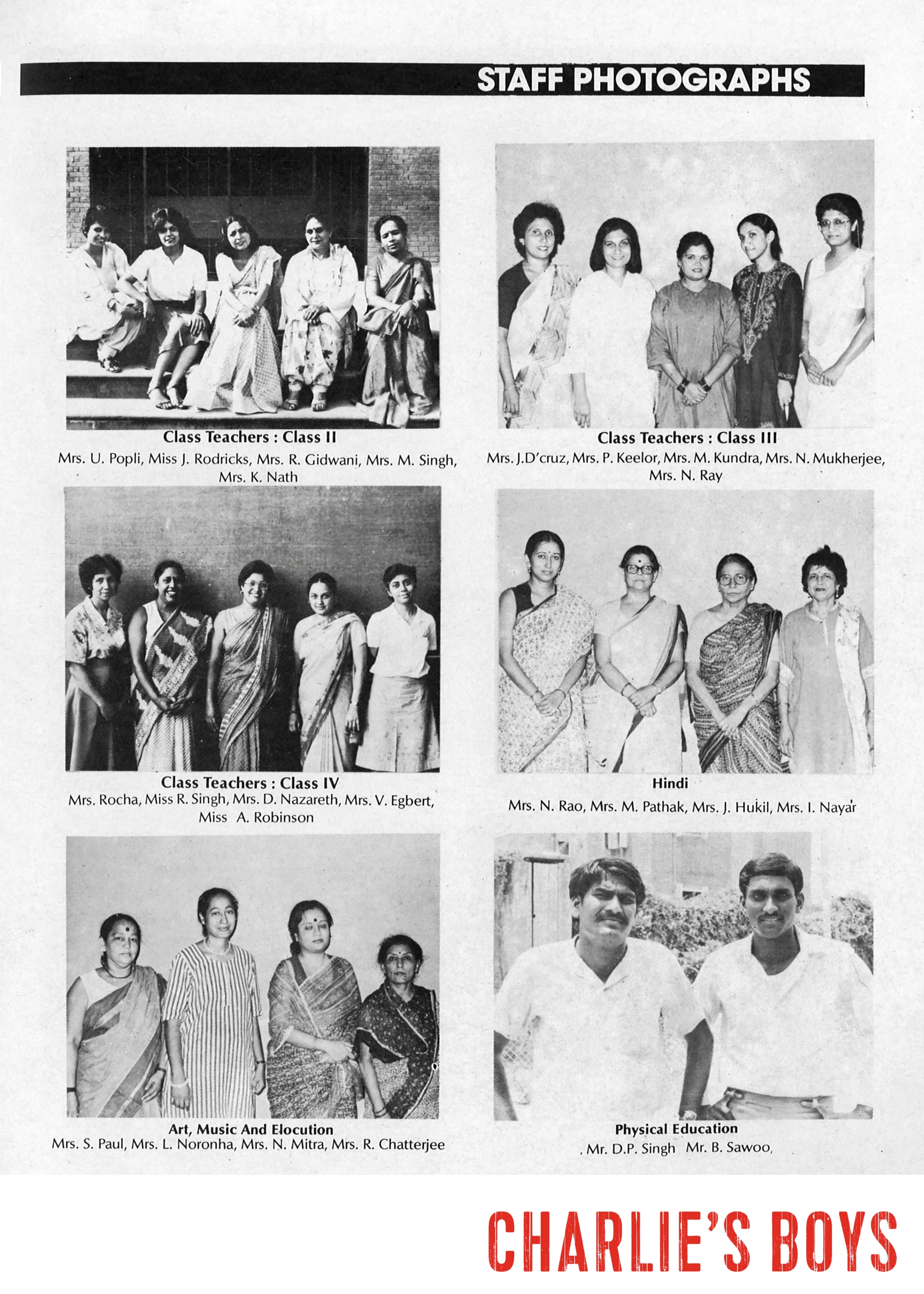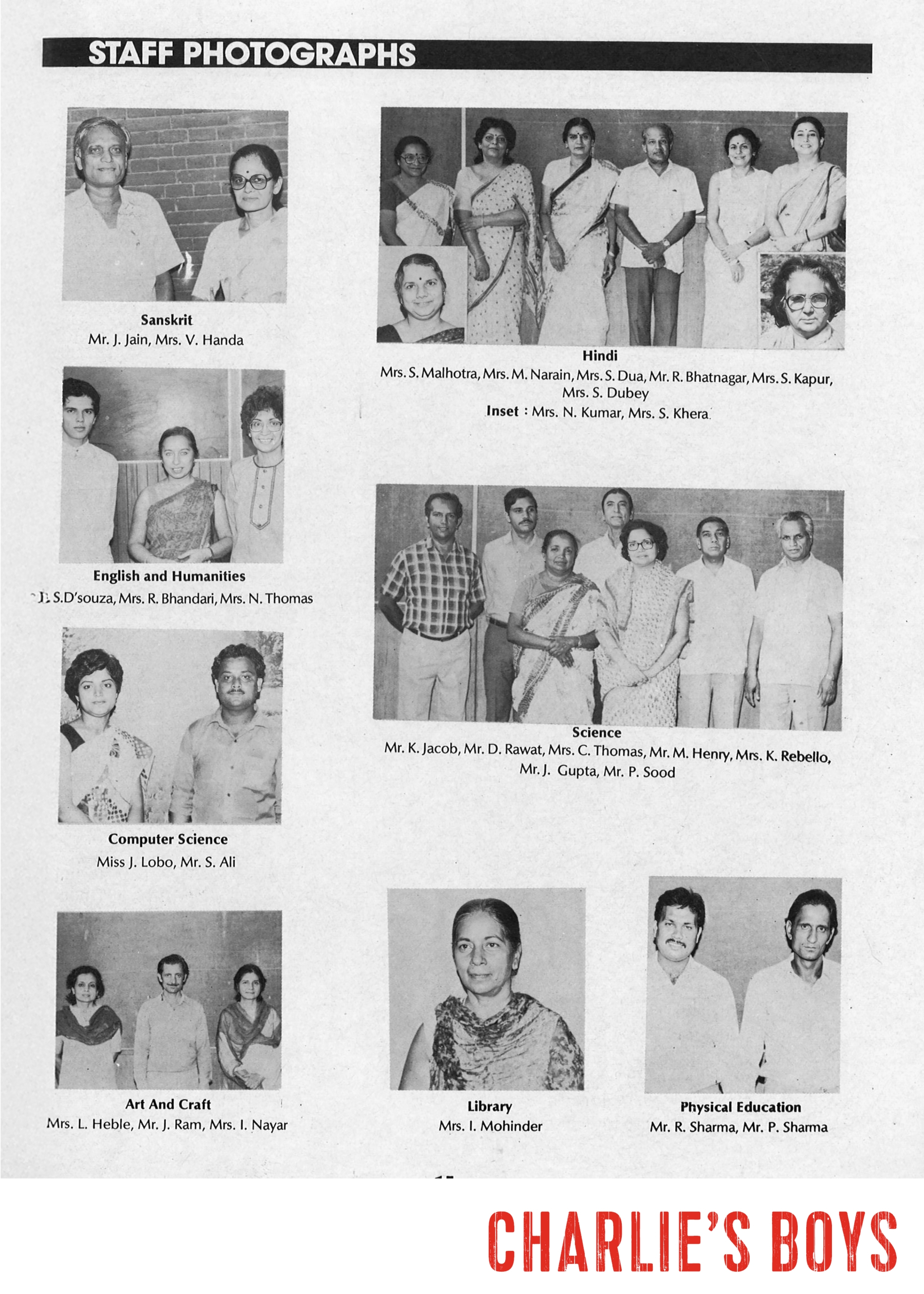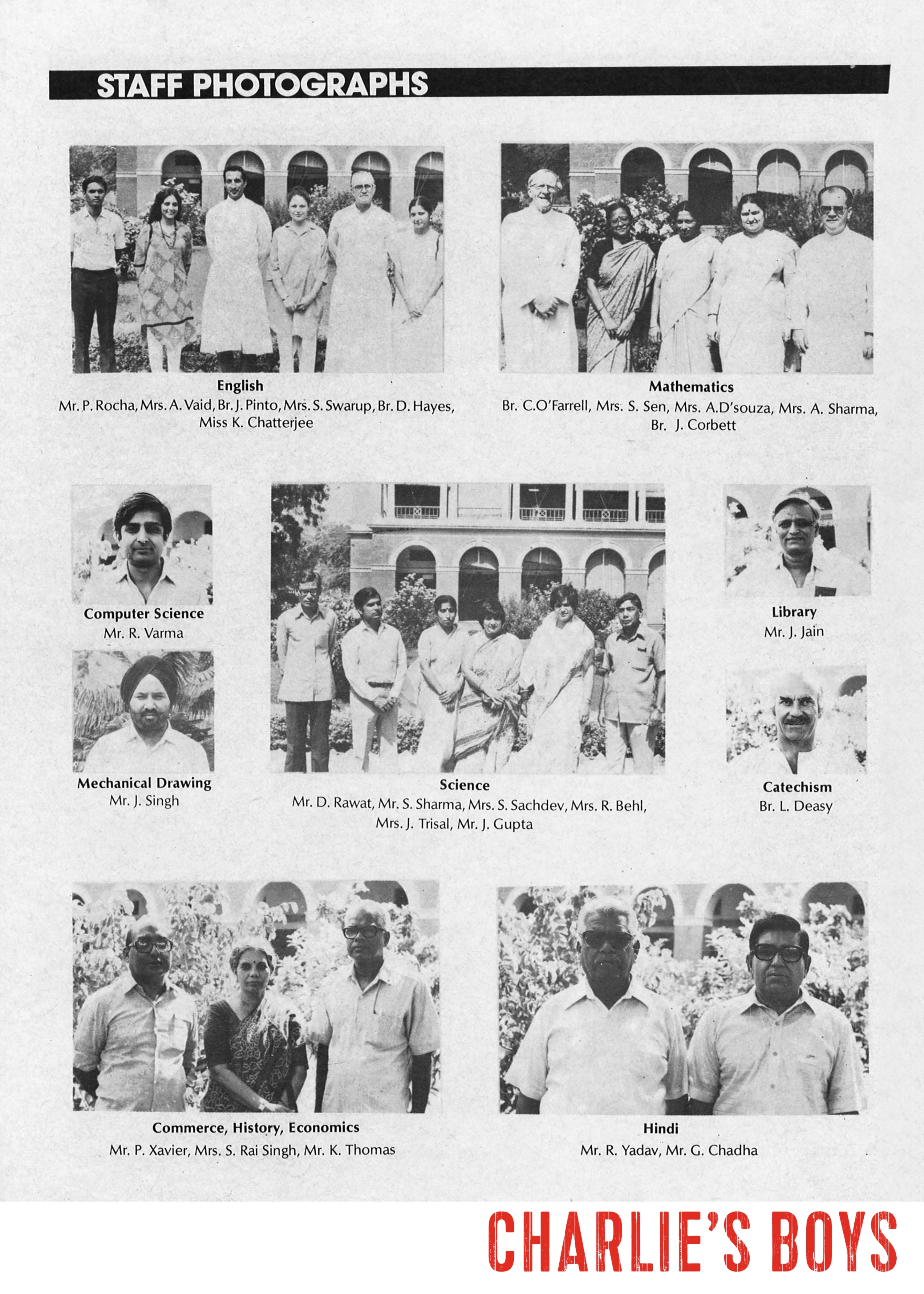 Glimpses of the faculty and management of St. Columba’s School in the 1970s and 1980s. Click on any image to view and download a high resolution version. They also feature in Charlie’s Boys, a memoir by Ajay Jain based on his days in the school.